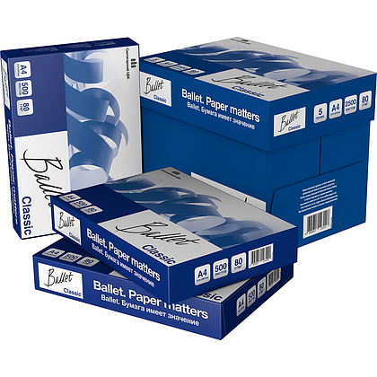 Бумага для офисной техники  Ballet Classic - отличный вариант для печати текстовой и графической информации. Белизна - 153% CIE, плотность - 80 г/м.кв. Формат А4. Предназначена для двусторонней печати, а также для  печати документов предназначенных для  долгосрочного архивного хранения.  Пачка - 500 листов.