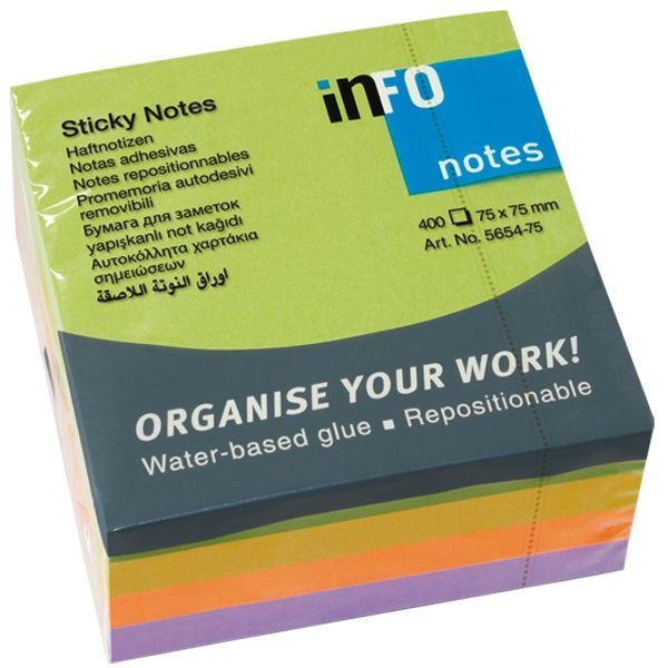 Бумага для заметок на клейкой основе 75*75мм 400 листов Info notes