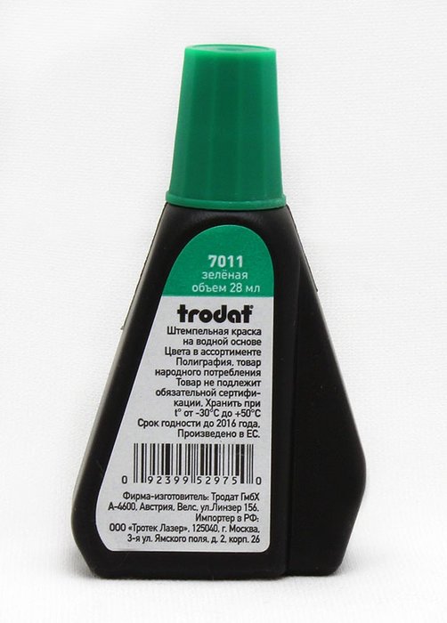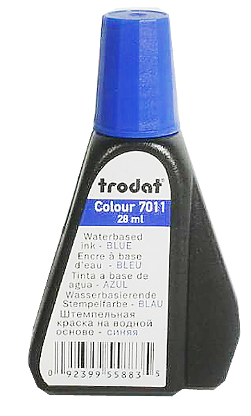 Штемпельная краска Trodat. Объем 28 мл. Бутылочка оснащена дозировочным носиком. Не содержит масла. Подходит для всех видов штемпельных подушек, а так же для металлических печатей. Цвета в ассортименте.