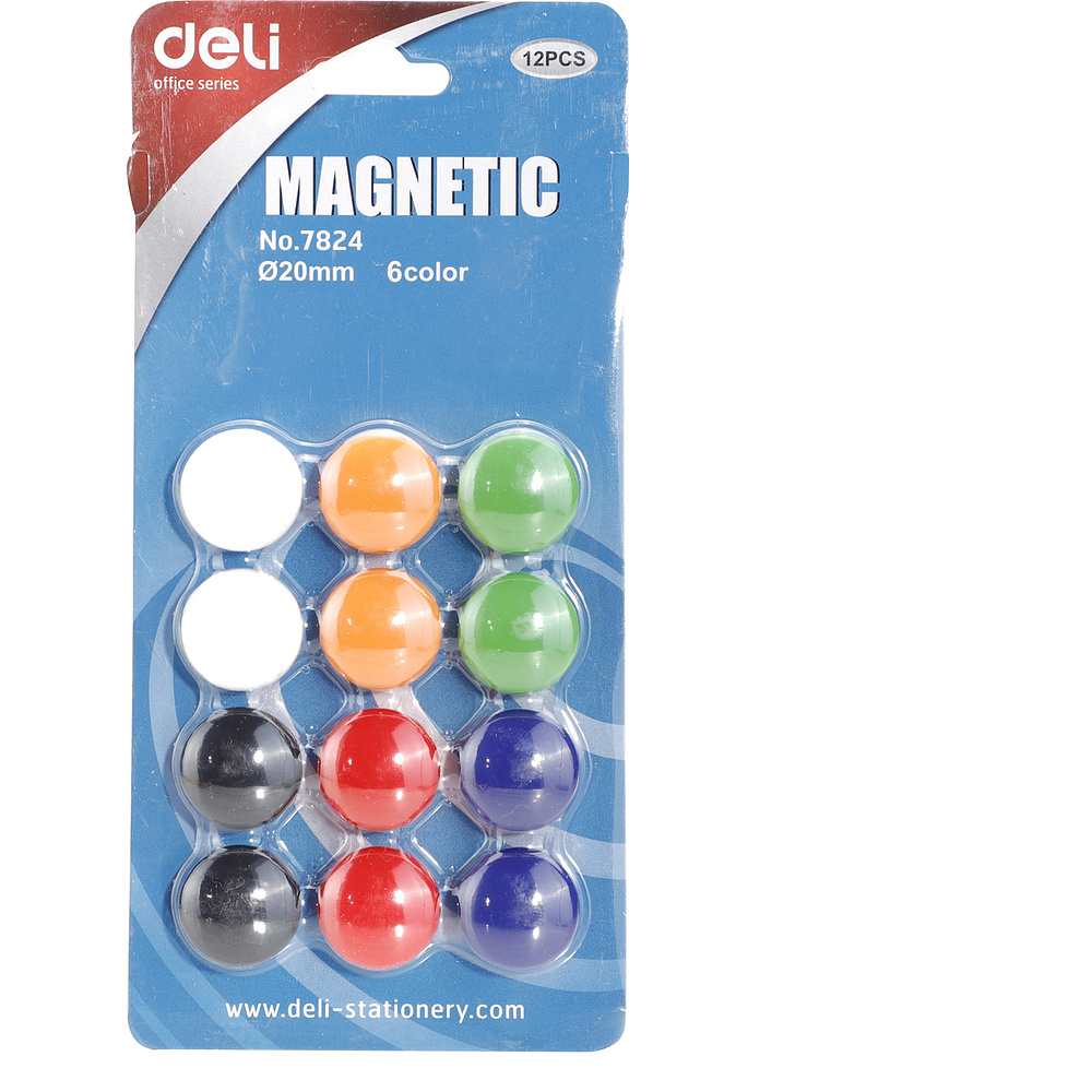 Магниты Deli - это надежные и удобные аксессуары для магнитных досок. В комплекте -12 штук. Имеют круглую форму, диаметр 20 мм. Поставляются в блистерной упаковке.