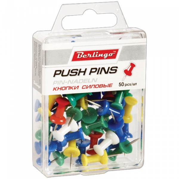 Кнопки цветные предназначены для крепления бумаги. Длина острия - 12 мм. Упаковка в пластиковую коробочку по 50 шт.
