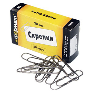 Скрепки гофрированные металлические inФормат. Имеют волнистую поверхность для надежного скрепления большого объема документов. Размер -50 мм. Упакованы в картонную коробку.