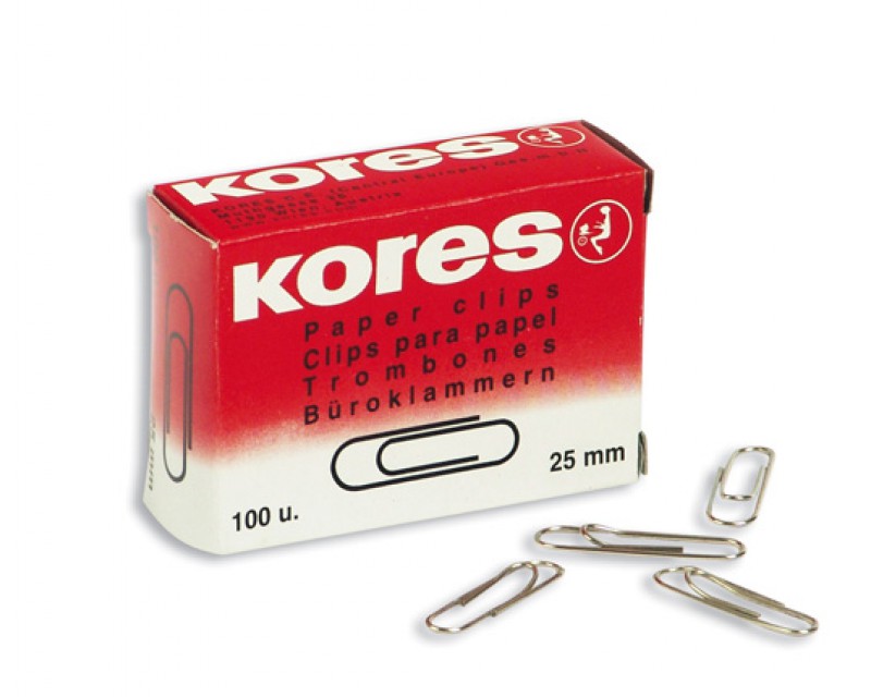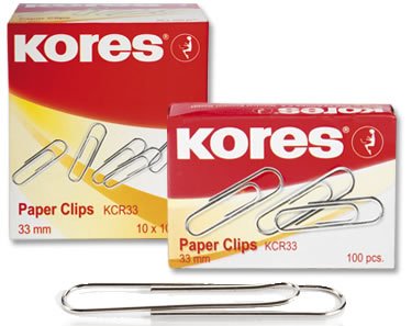 Скрепки овальные металлические Kores. Размер -25, 33, 50 мм. В картонной коробке по 100 шт. Отличный вариант для каждодневного использования.