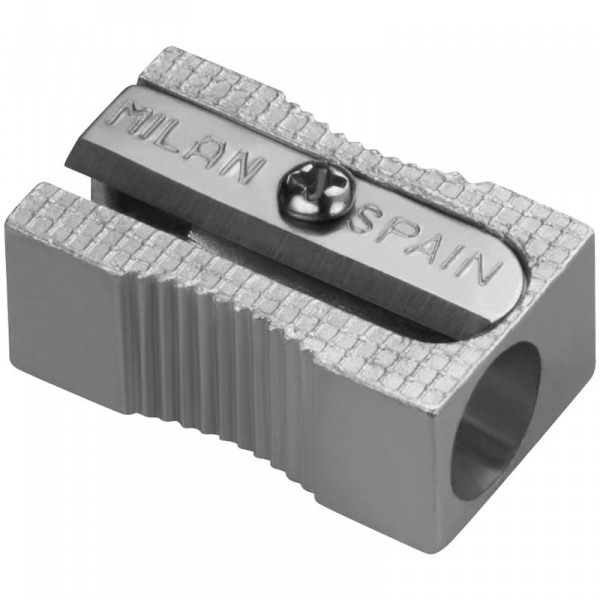 Алюминиевая точилка MILAN. Лезвие острое и устойчивое к повреждению из углеродистой стали. Отлично подходит для графитовых и цветных карандашей. Размер - 25*15*10 мм. Диаметр отверстия - 8 мм.